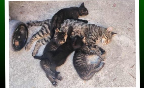Egy kedves állatbarát udvarát lakta be a kóbor mamacica, akit etettek. Hamarosan kiderült, hogy nem egyedül van, hozta 4 kiscicáját is. A családnak kisgyerek, saját kutyus és cica mellett sajnos már nem jut annyi ideje rájuk, amennyit igényelnének. Viszont szeretnék, ha a kis jövevények szerető otthonba kerülnének! A kicsik 8-9 […]