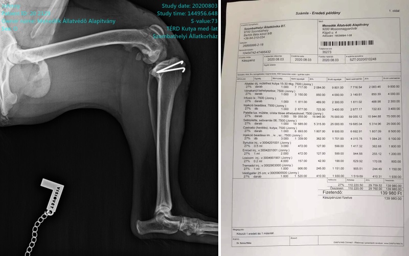 Még hosszú az út a gyógyulásig, de mi bízunk benne, hogy sikeres volt a műtét. Egyelőre kennel nyugalom, aztán fizioterápia vár rá. Sajnos senki nem jelentkezett hogy befogadná ideiglenesen, ezért megint nekünk kellett varázsolni. Így egyik tagunk vitte haza, és saját otthonában gondozza. Köszönjük azoknak, akik anyagilag támogatták Johnny gyógyulását! Továbbra is várjuk/várnánk ideiglenes befogadók jelentkezését, mert sajnos ezt így már nem bírjuk! (2020-08-06 08:47:54)